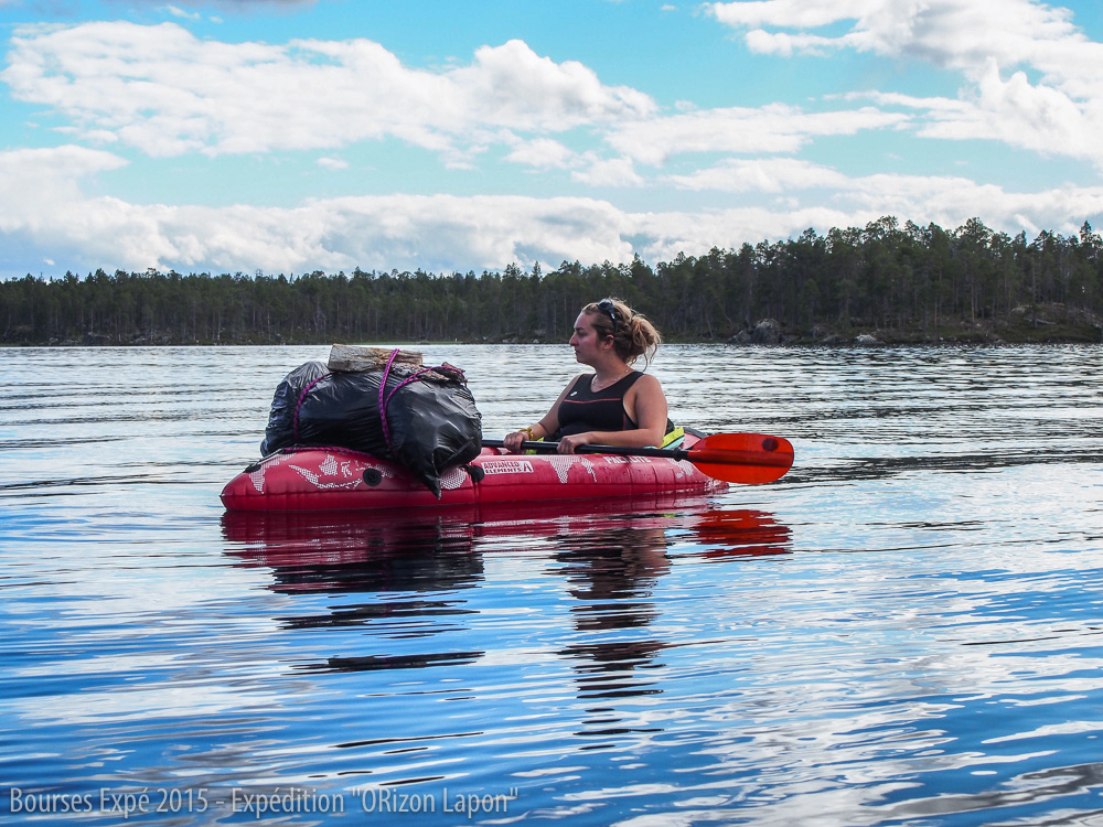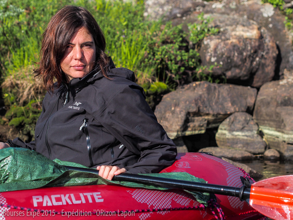 Nos kayaks gonflables nous ont été livrés très tardivement avant notre départ et n’avons pu les essayer avant l’expédition. Il a fallu apprendre rapidement à se stabiliser, avec notre poids de corps et le poids du sac à l’avant. Nous améliorons notre technique de sortie et entrée dans le kayak et arrivons de mieux en mieux à rester au sec dans notre embarcation.