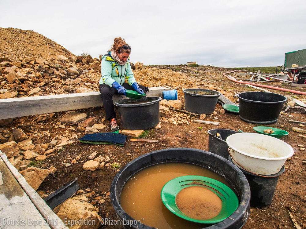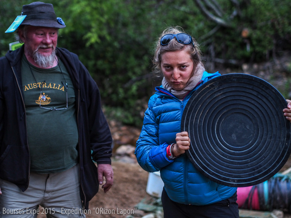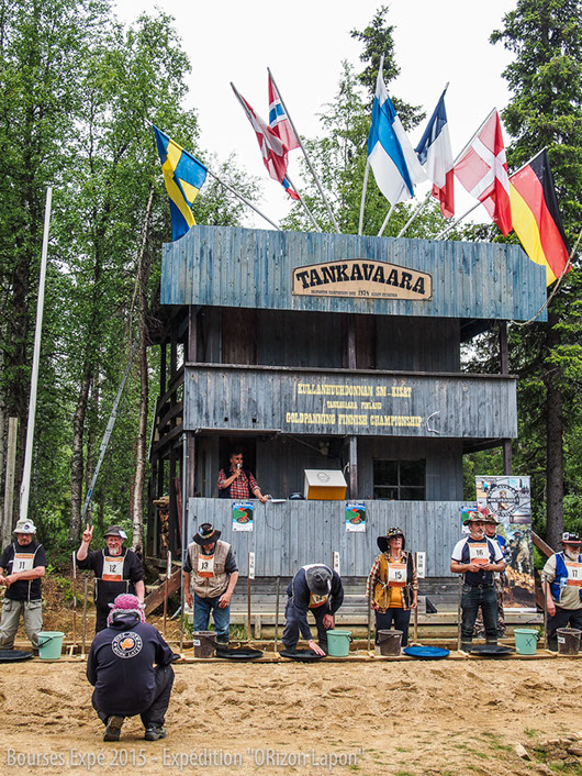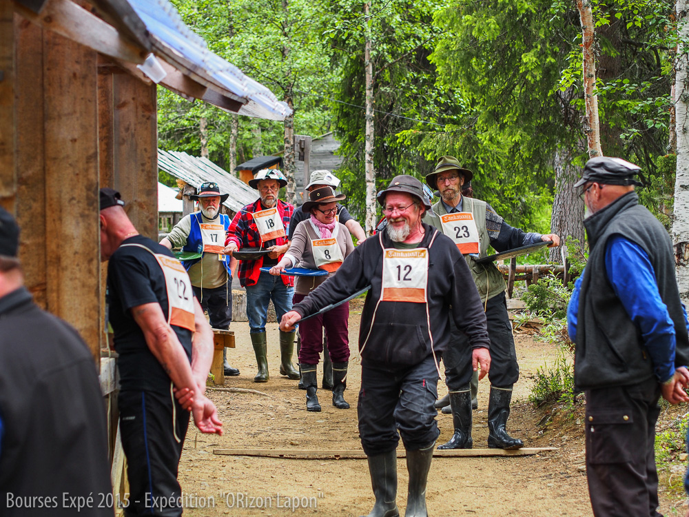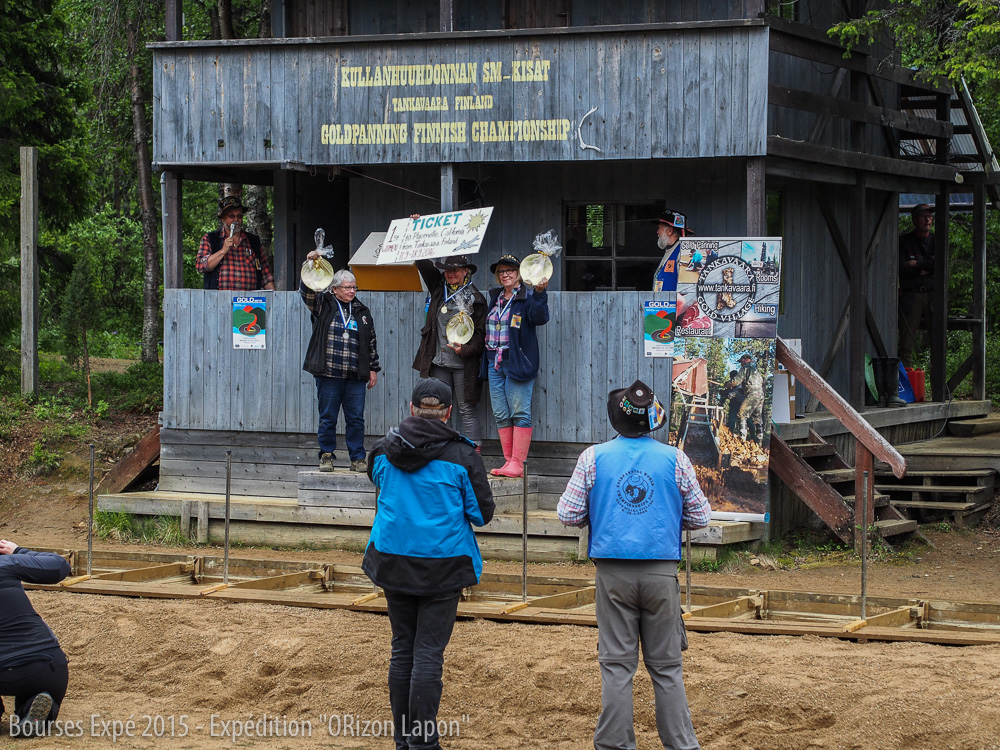 Ari nous fait faire le tour du campement et réussit à nous convaincre de nous inscrire à la compétition des chercheurs d’or débutants qui aura lieu le lendemain. Après un rapide entraînement supervisé par Ari et ses amis, nous participons donc à cette fameuse compétition et finissons fièrement 2ème et 3ème de la compétition derrière une Finlandaise. Nous obtenons ainsi les médailles d’argent et de bronze.