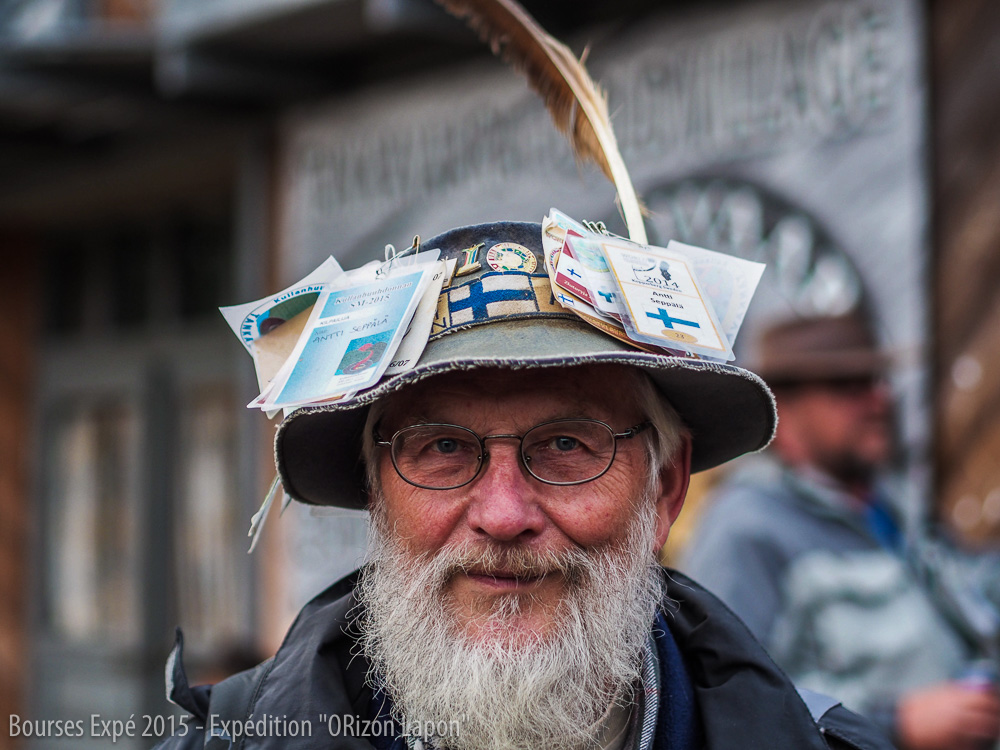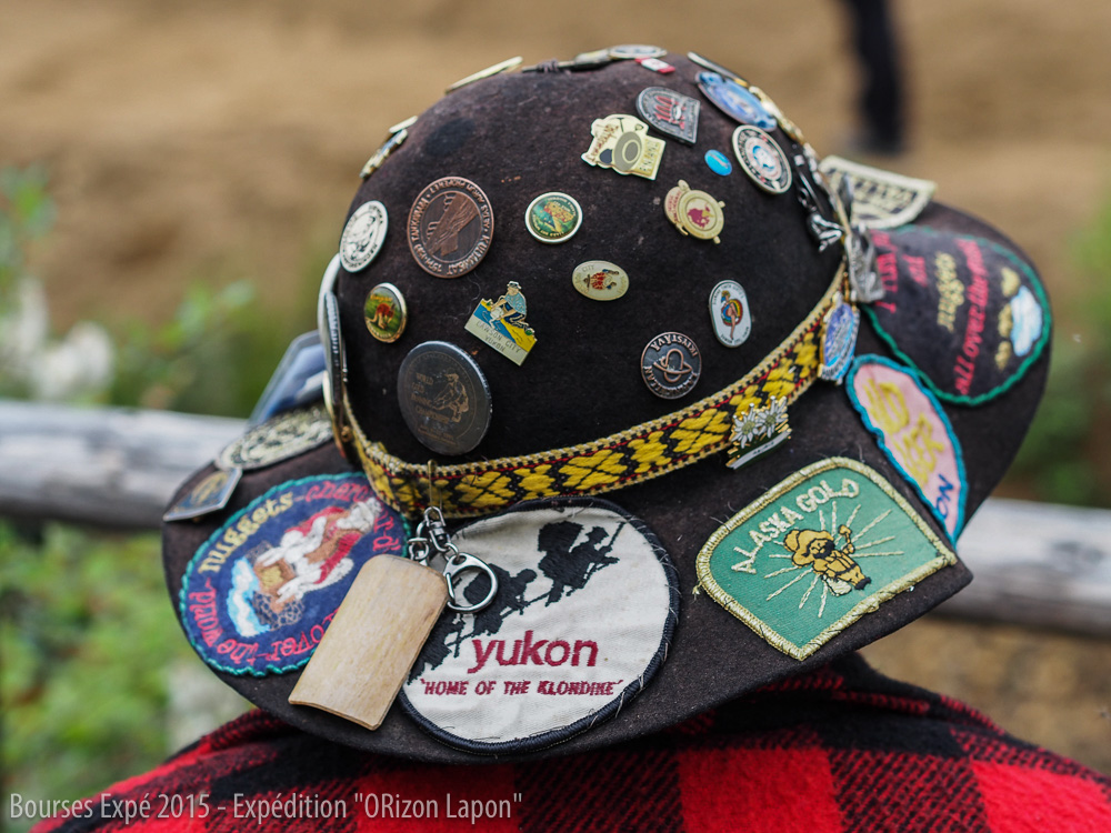 L'OR'IZON LAPON - Pin's (des différentes éditions du festival) sur le chapeau d'un participant