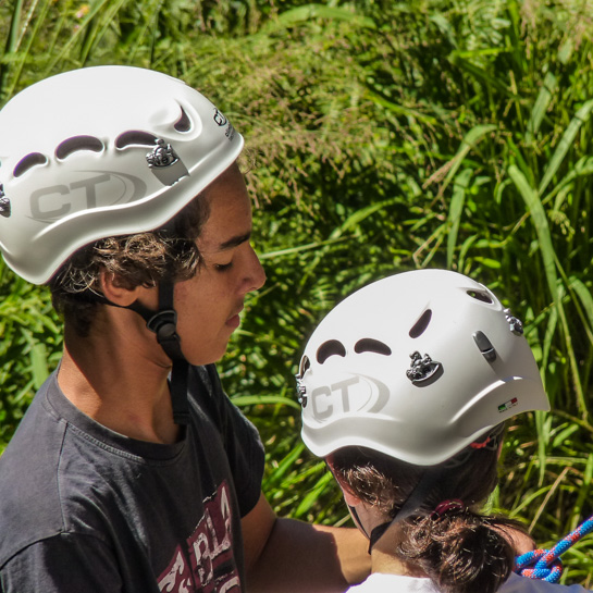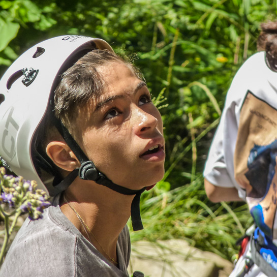 Hugo attentif à la réalisation de son nœud d'encordement.