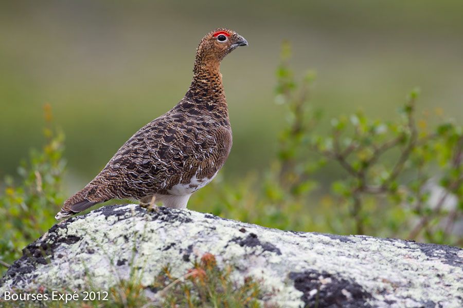 KOROC - 10 juillet. Lagopède alpin surpris sur les versants des monts Torngat. Vallée de la rivière Koroc.