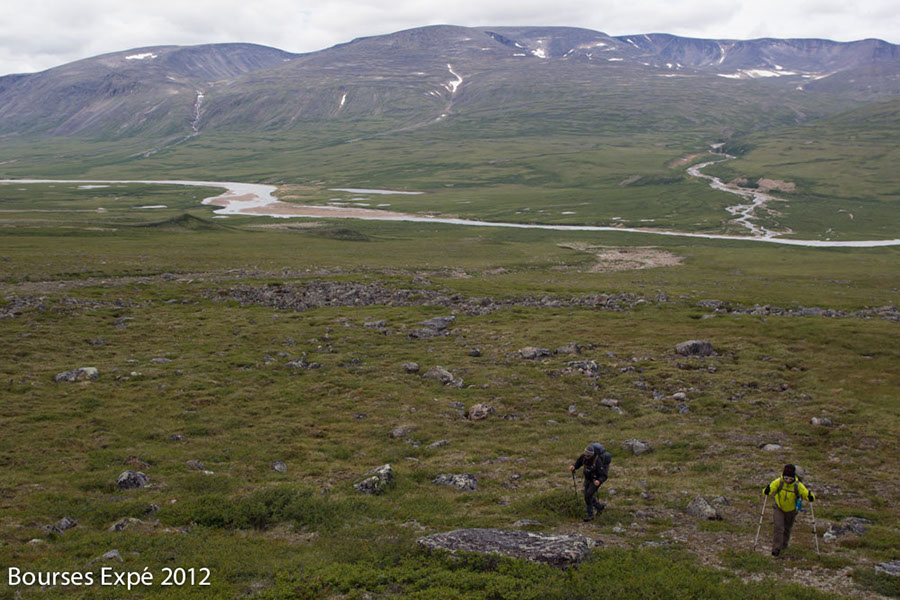 KOROC - 7 juillet. Benjamin et Simon en trek dans les monts Torngat. Frontière Nunavik ‐ Nunatsiavut. Péninsule nord Québec ‐ Labrador.