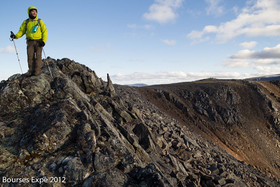 KOROC - 10 juillet. Simon sur un sommet. Nunatsiavut. Monts Torngats. Nord Labrador.