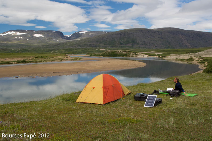 25 juillet. Simon et moi profitons du soleil pour faire du téléchargement d’images. Installés sur les caisses pélicans, les sauvegardes vont bon train et le panneau solaire est efficace. Il était temps. Les disques durs de Simon ont l’air sauvés mais son EOS 5D mark II prend des photos lorsque nous changeons le mode autofocus… L’écran LCD est rempli d’eau condensée. Le soleil lui redonne pourtant un second élan et il fonctionne parfaitement en fin de journée… Nous regardons les cartes et nous envisageons un rando pour le lendemain.
