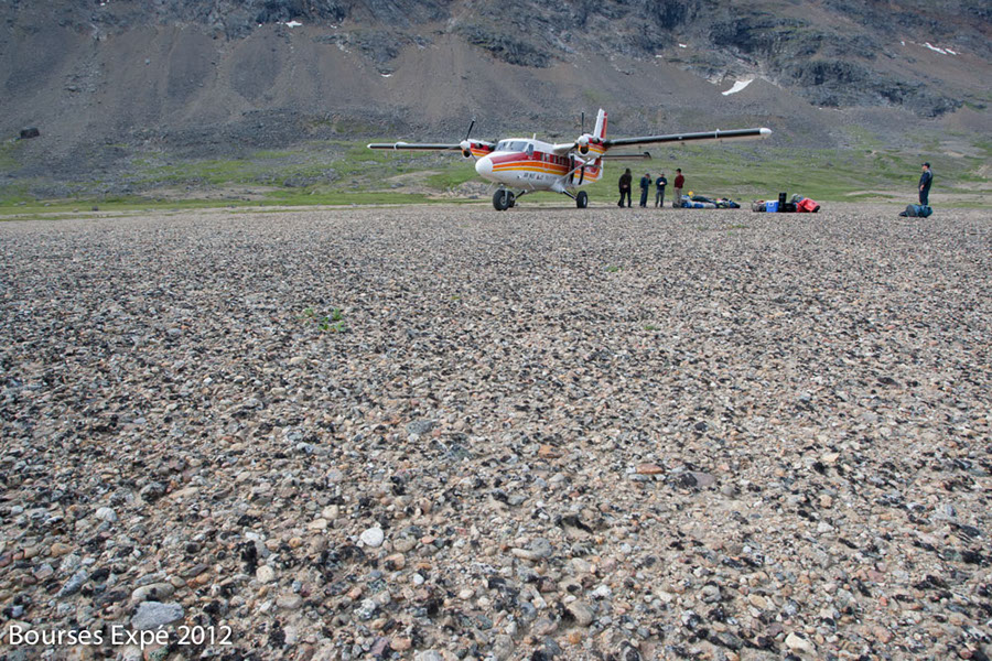 KOROC - 4 juillet. Piste d’atterrissage naturelle sur un plateau arctique des monts Torngat. Frontière du Nunavik et du Nunatsiavut. Nord de la péninsule Québec ‐ Labrador.
