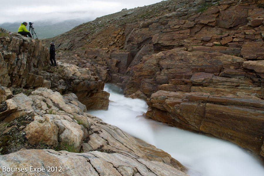 12 juillet. Le soleil est clément. C’est mon tour de rester au camp. Recharge de batteries. Un petit rando pour les autres. Je regarde la carte longuement. On est au 1/5 de la rivière et en plein cœur des monts Torngat. Cette journée me fait le plus grand bien et je me sens récupérer. J’ai des petites blessures aux doigts que j’essaie tant bien que mal de soigner, mais l’air est sec et elles refusent de cicatriser. Je repars le soir avec la même stratégie photographique lorsque Ben, Guillaume et Simon, sont arrivés. Le camp n’est jamais laissé sans surveillance. Si un des ours noirs, qui sont très nombreux dans ces montagnes, déchirent du matériel ou éparpillent de la nourriture, l’expédition est condamnée.