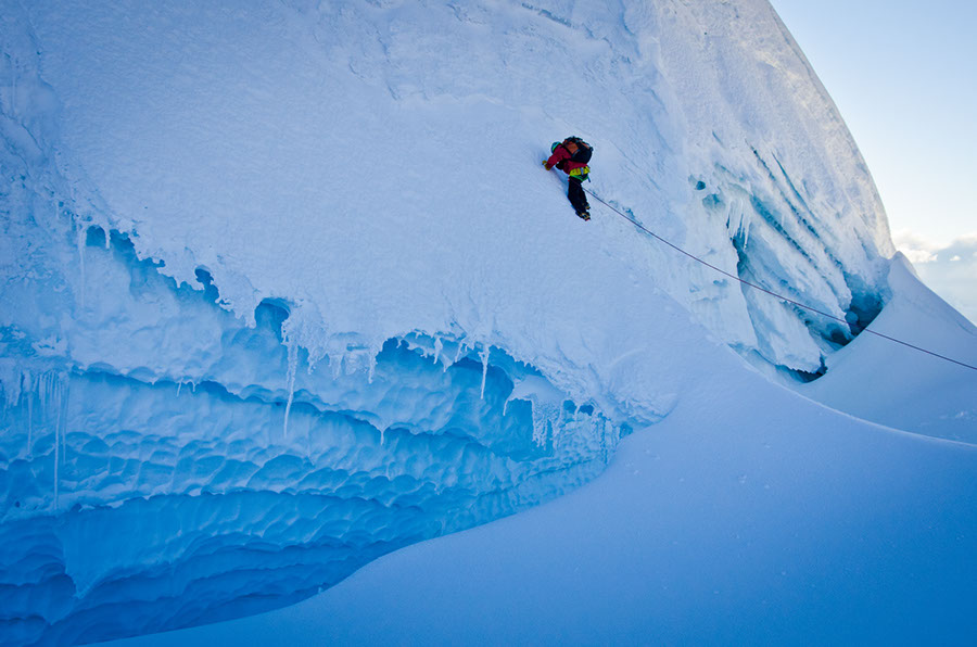 Bloqués par le décrochement d’une plaque en dévers formant une crevasse pendant près d’une heure, nous étions tous immobilisés en plein vent, à l’ombre, avec une fatigue physique et psychologique importante. J’ai alors pris conscience que la Vie, dans ces instants, ne tient plus qu’à quatre pointes de crampons et deux piolets…