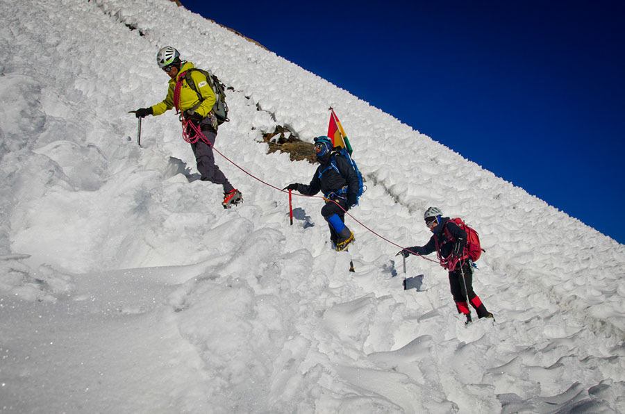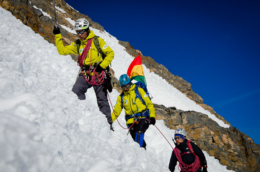 Il était prévu l’ascension de 5 sommets culminant entre 5700 et 6000 m. Ce challenge sportif nous permettait aussi d’impliquer nos amis guides de montagnes boliviens qui n’ont pas cette culture de l’exploration. Au delà du défi physique, cela en faisait un parcours initiatique pour ces locaux. L’idée était de mettre en valeur ces Hommes boliviens qui ont choisi de vivre de leur passion dans un pays où les montagnes sont des lieux sacrés et chargés d’histoire. »
