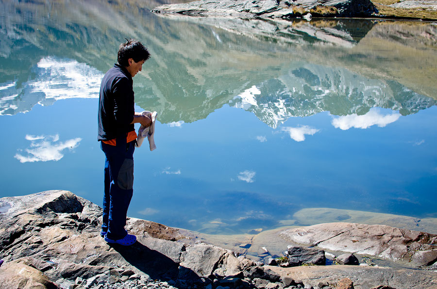 Seuls au milieu de cette cordillère, sans signe de civilisation, nous avons continué notre Thaki sans croiser une âme… Une nouvelle journée de trek, après les 17 heures de marche le veille, nous a permis d’arriver dans une magnifique vallée où s’enchaînaient trois gigantesques lagunes…