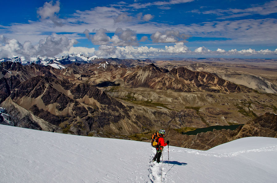 L’expédition complète était programmée sur 14 jours. L’idée était d’ouvrir une nouvelle voie du sud au nord de cette chaine de montagnes, par le versant Altiplano, versant Ouest, en collant au plus près des glaciers.